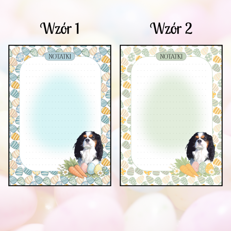 Małe, poręczne i do psiozazdroszczenia – te notesy powstały z myślą o codziennych zapiskach dla psiolubów. Lista zakupów, szybka notatka, plan dnia… a na każdej kartce towarzyszy Ci pyszczek Twojego psa. Każdy notes jest personalizowany – grafika z pyszczkiem Twojego pupila pojawia się na każdej kartce, w wybranym wiosennym lub wielkanocnym wzorze. Notes zawiera 50…