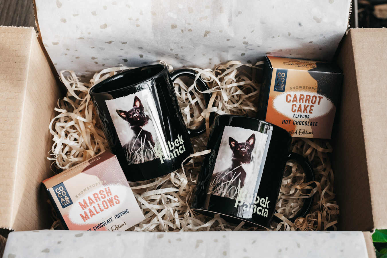 • Różne warianty: Kubki w kolorze białym lub czarnym dostępne są pojedynczo lub w zestawach dla 2 osób ze smacznym dodatkiem wewnątrz boxa.