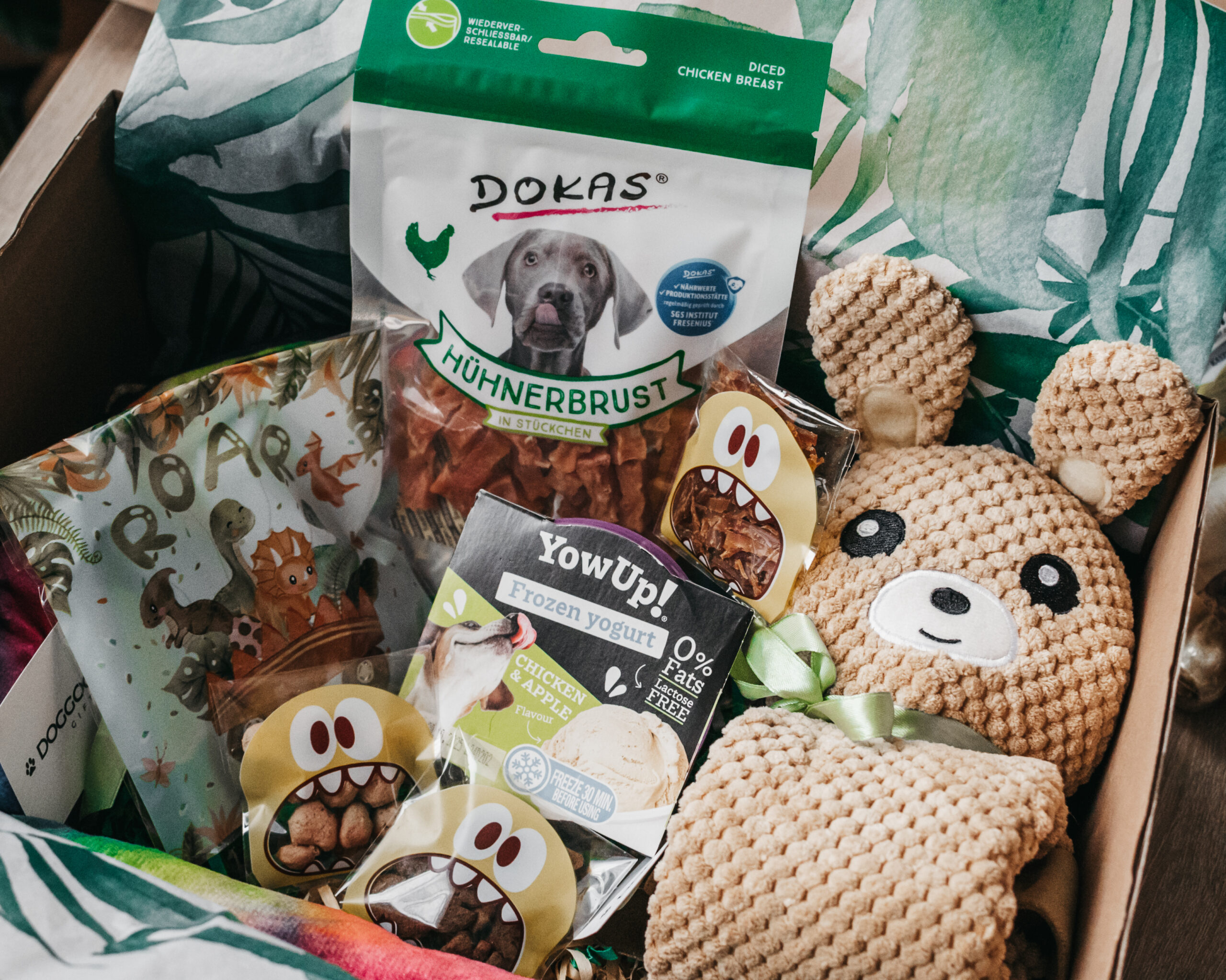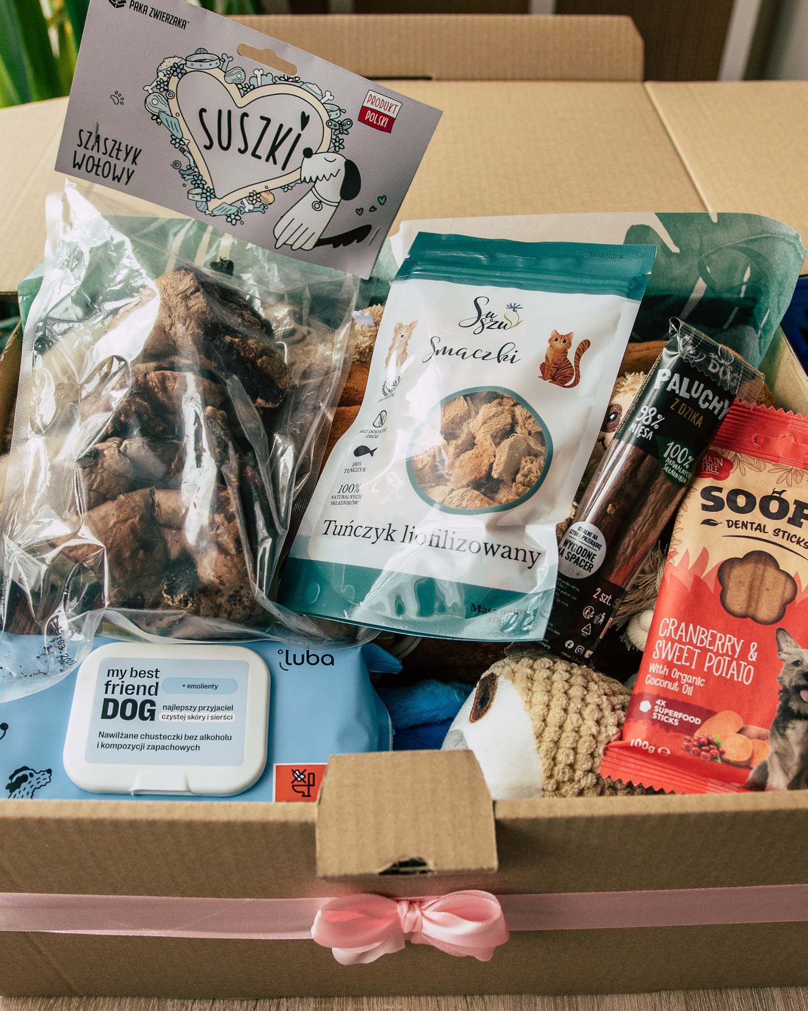 W boxie znajdziesz różnorodne smakołyki oraz angażujące zabawki, które spełnią potrzeby psiaka w każdym rozmiarze. Box jest skomponowany z myślą o tym, aby sprawić przyjemność psiakowi niezależnie od jego wieku czy rasy.